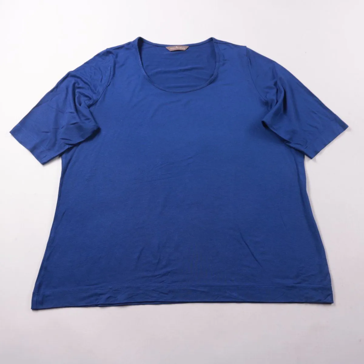 Синяя футболка Marks & Spencer Portfolio с округлым вырезом и рукавом до локтя. Подойдёт для повседневных образов и спокойного casual. Мягкий трикотаж комфортно тянется и не стесняет движений.