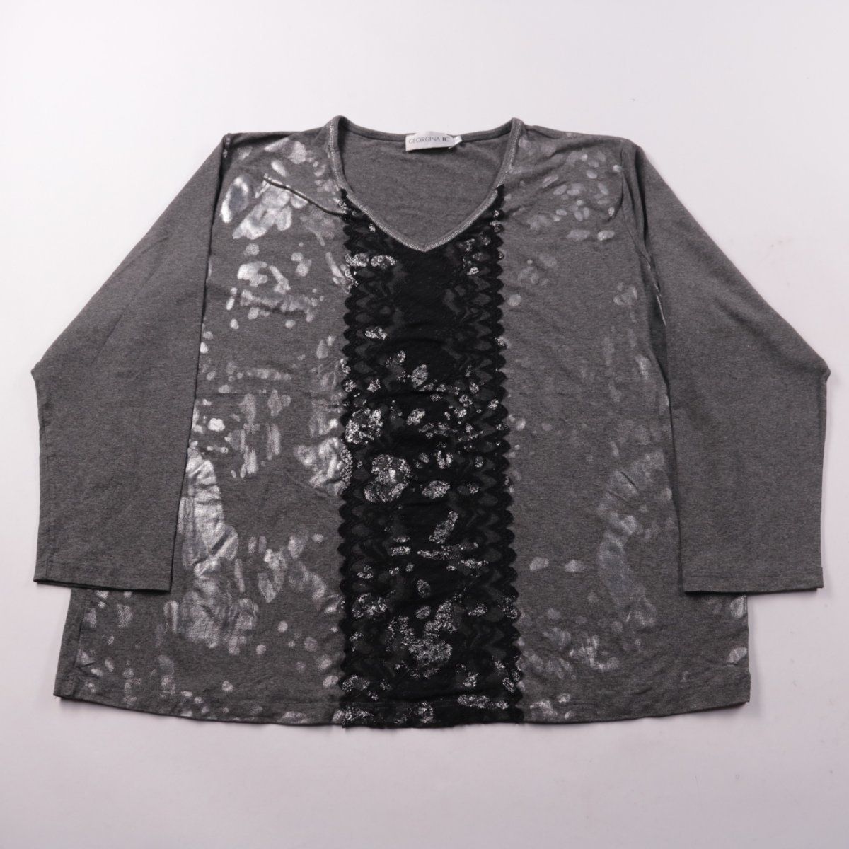 Женский лонгслив GEORGINA B. серого цвета с V-образным вырезом и декоративной чёрной вставкой спереди. Подойдёт для повседневных образов в прохладную погоду и как базовый слой. Материал на основе вискозы с эластаном хорошо тянется и комфортно сидит.