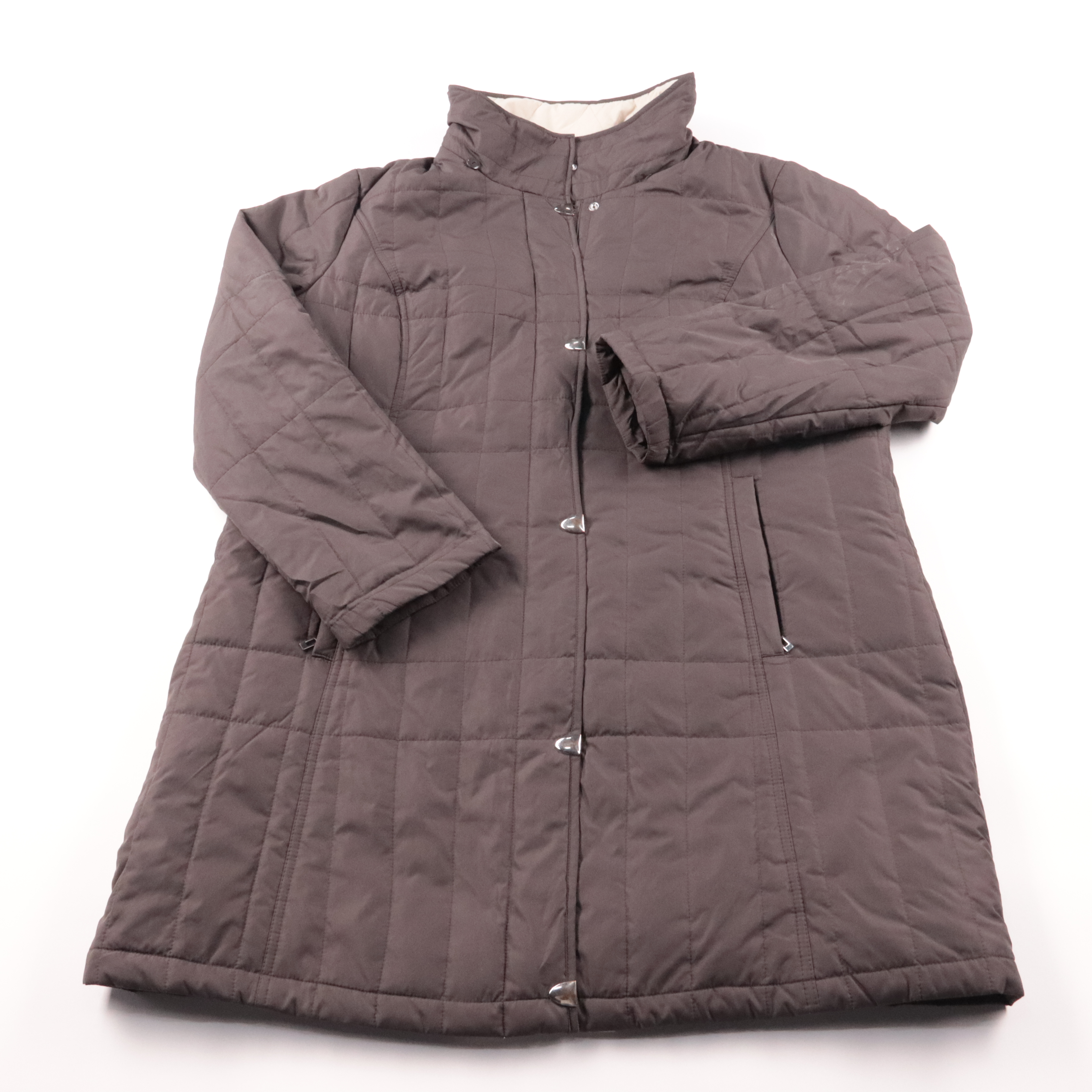 Стёганая демисезонная куртка Canda прямого кроя с высоким воротником и застёжкой на пуговицы. Подойдёт для прохладной осени и весны, легко сочетается с повседневными образами. Практичный плюс — удобные боковые карманы и немаркий тёмный цвет.
