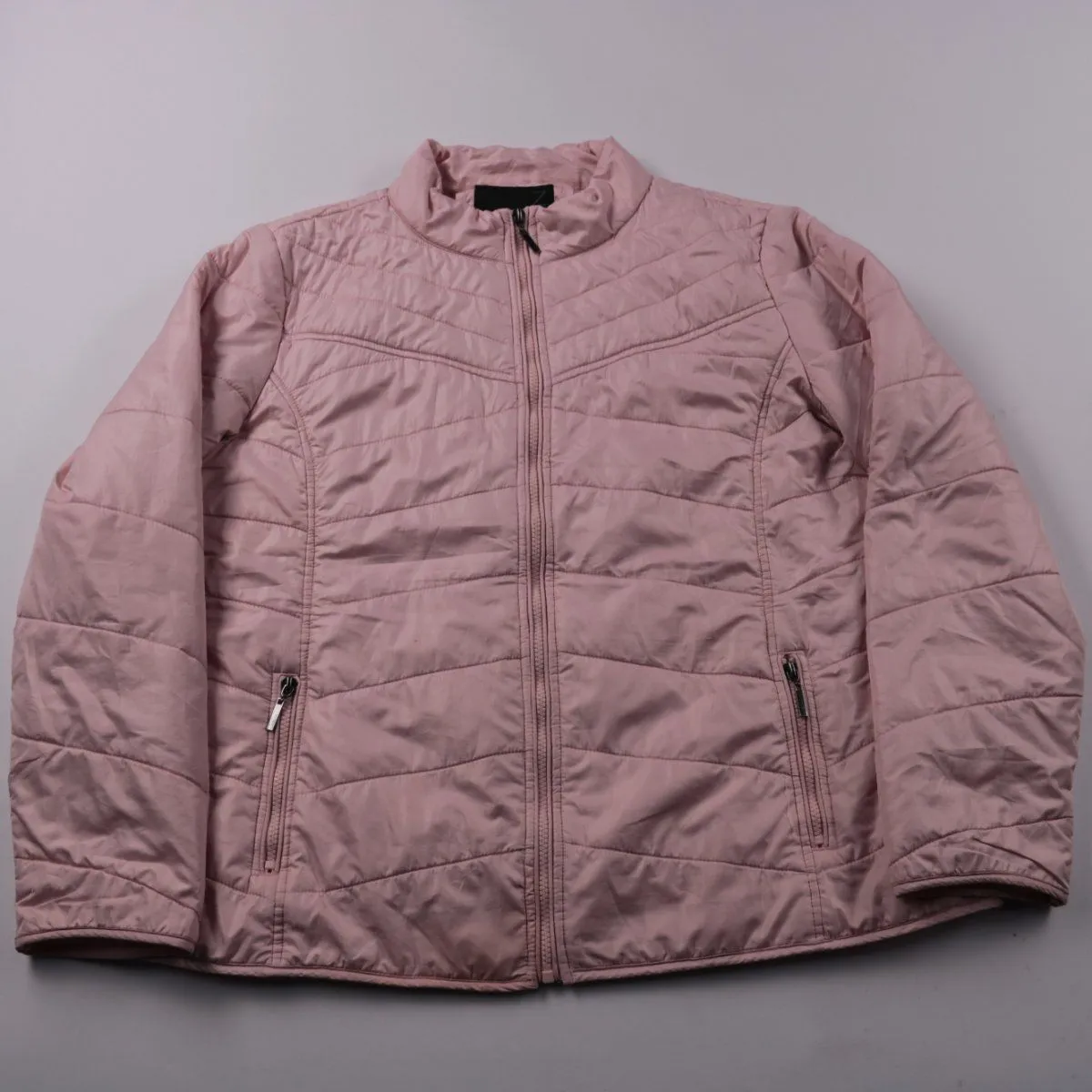 Женская стёганая куртка Jazlyn в пыльно-розовом цвете, на молнии и с боковыми карманами на молниях. Подойдёт для прогулок и повседневной носки в прохладную погоду весной и осенью. Лёгкая и быстро сохнет благодаря полностью полиэстеровому материалу и утеплителю.