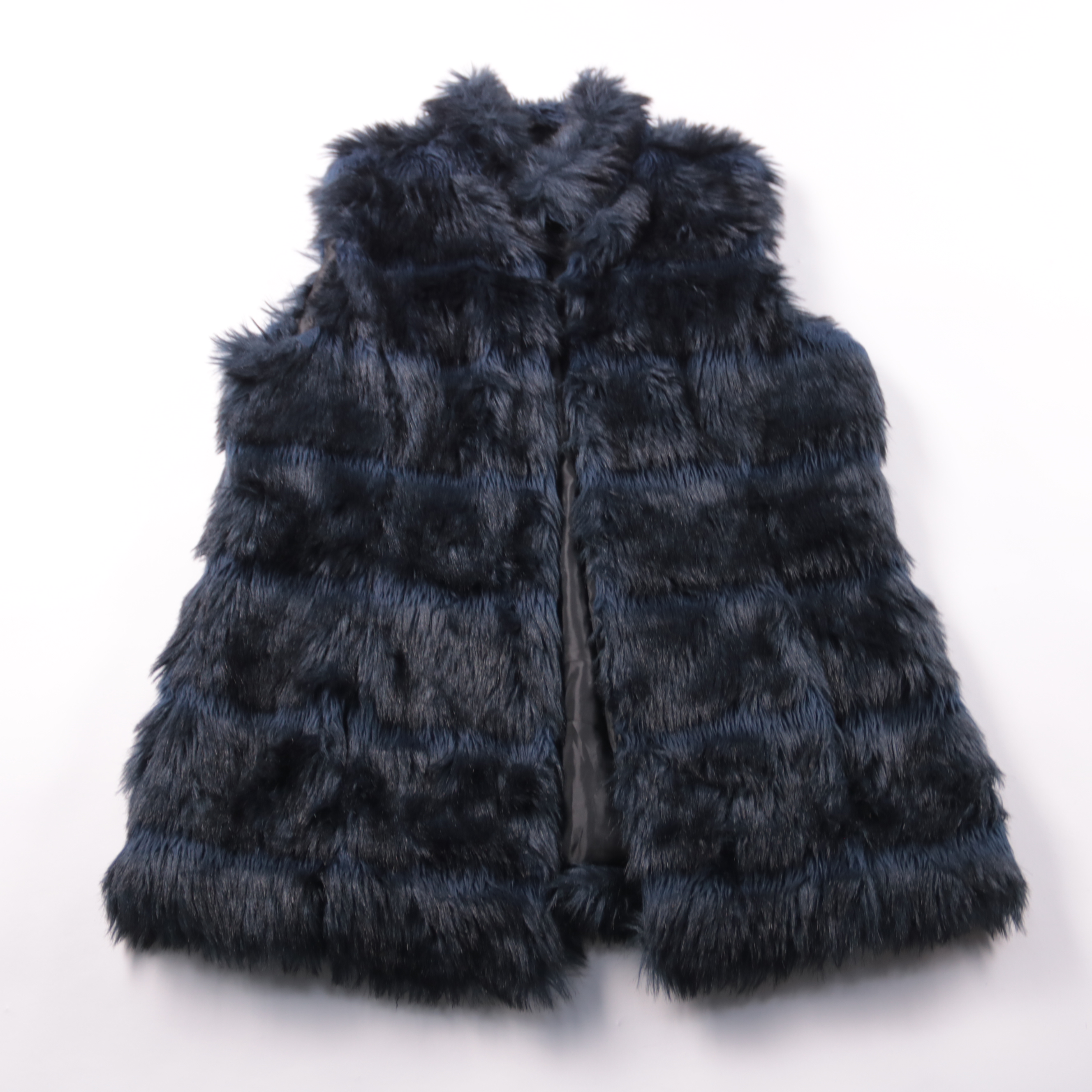 Меховой жилет Atmosphere тёмно-синего цвета с мягким объёмным ворсом и подкладкой. Подойдёт для прохладной осени/весны и для многослойных образов поверх водолазки или свитера. Практичный вариант: лёгкий, хорошо добавляет тепла и не сковывает движения.