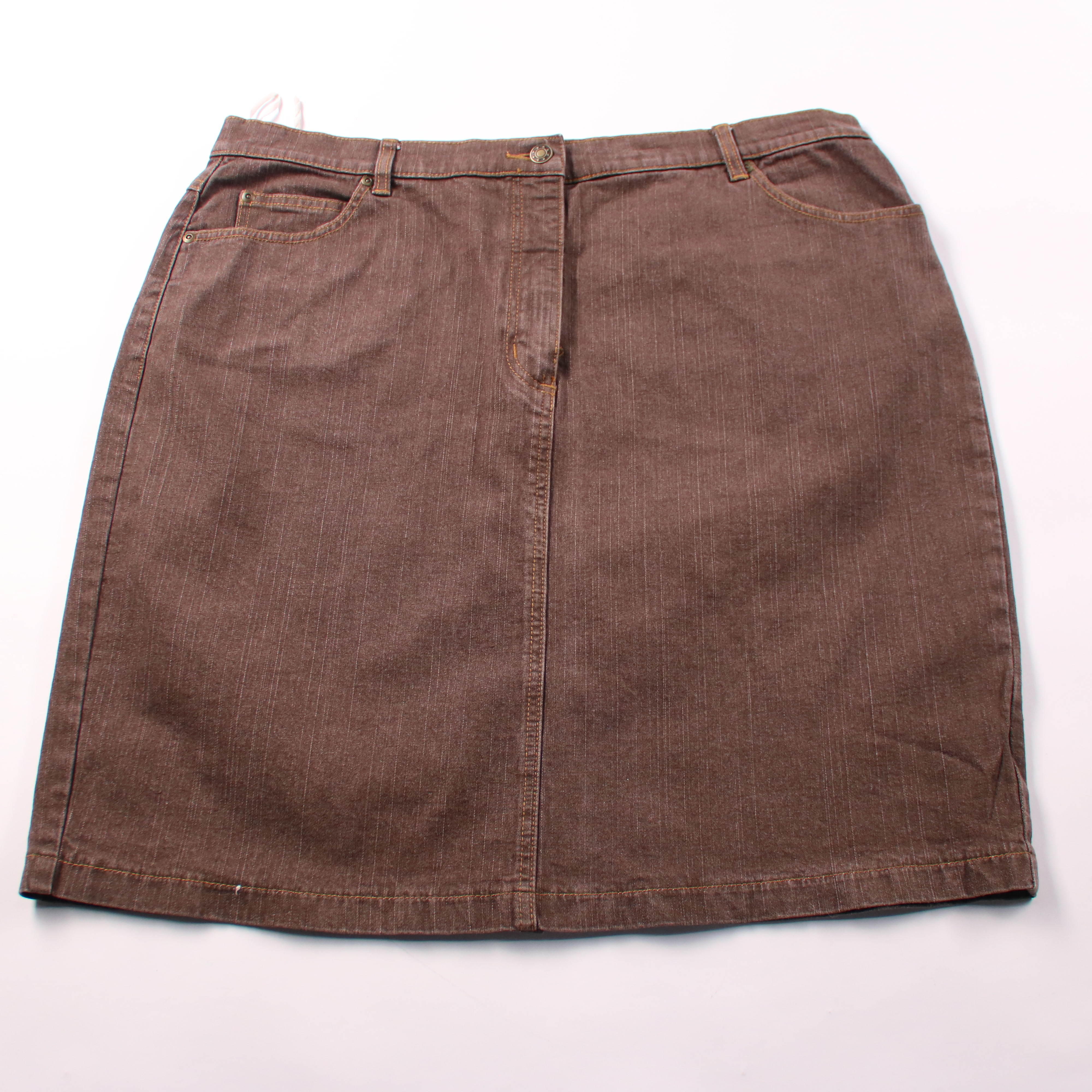 Джинсовая юбка Women’s selection коричневого цвета, прямого кроя с застёжкой спереди и карманами. Подойдёт для повседневных образов в городе и на работу с рубашкой или свитером. Плотный хлопковый деним с добавлением эластана комфортно садится по фигуре...