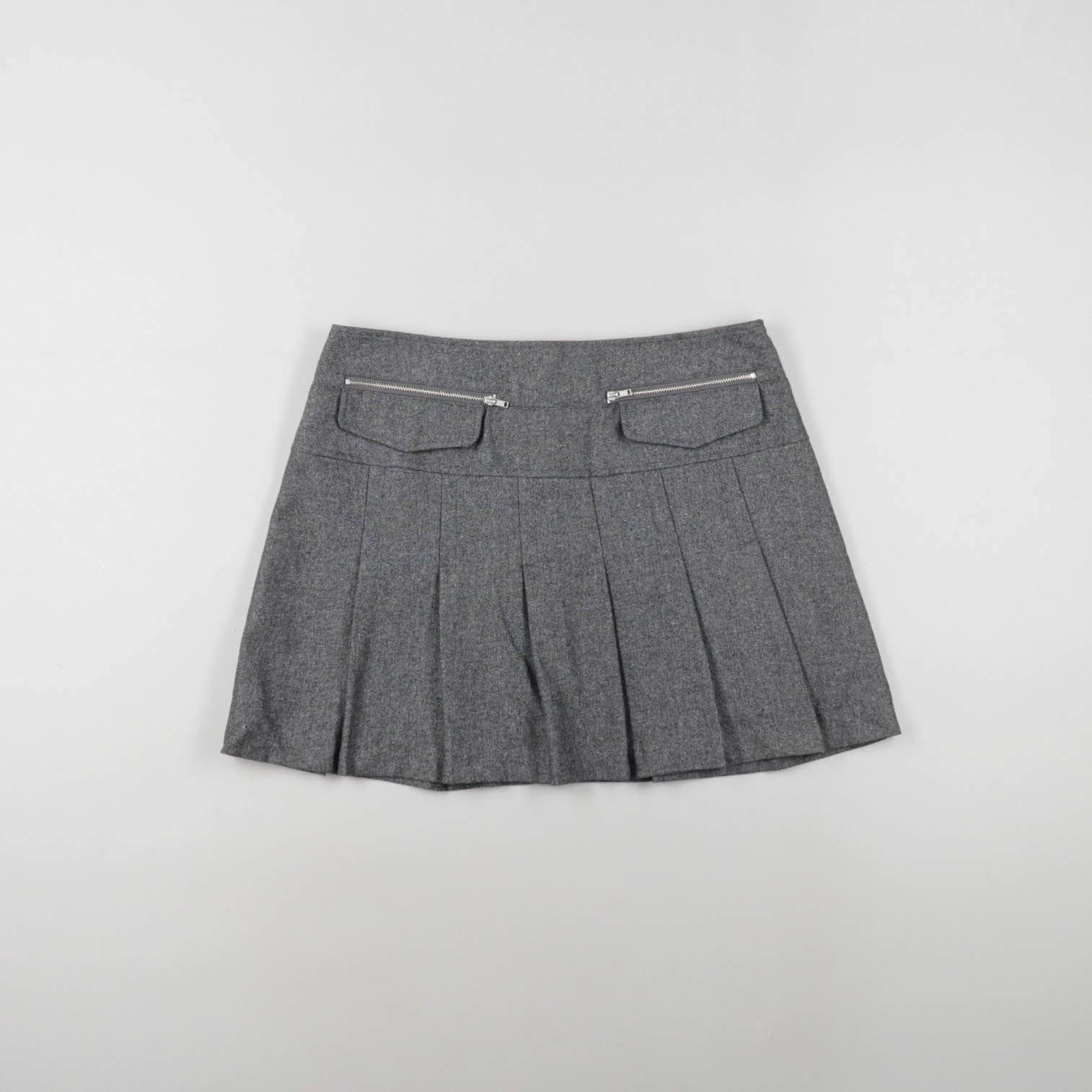 Серая плиссированная мини-юбка с аккуратными складками и молнией сзади. Подойдёт для повседневных образов и в офис с рубашкой или водолазкой. Практичный плюс — держит форму и легко сочетается с базовыми цветами.
