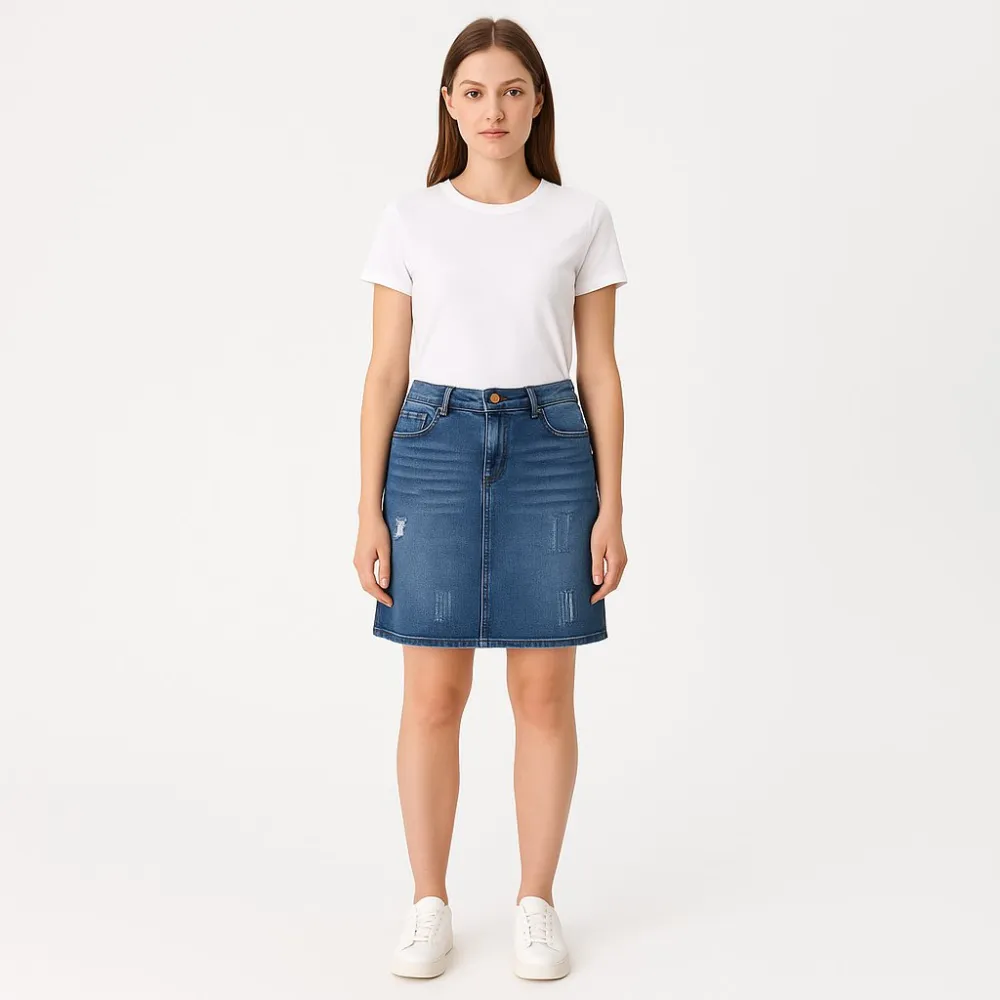 Джинсовая юбка B.C. из денима с лёгким стрейчем, классическая посадка и длина до колена. Подойдёт для повседневных образов с футболками, рубашками и кедами в тёплый сезон и с колготками в демисезон. Практичный плюс — плотная ткань хорошо держит форму и...