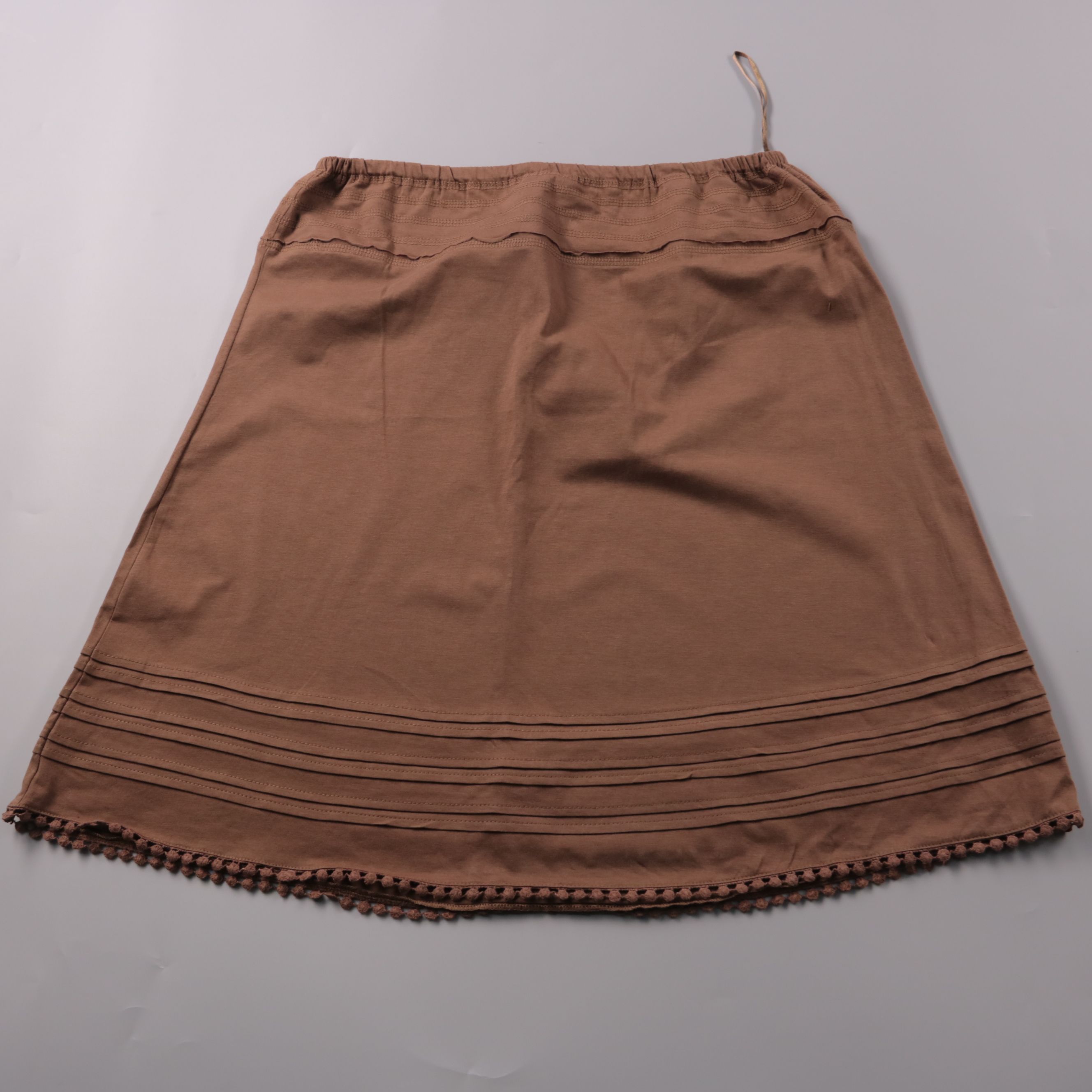 Хлопковая юбка Tom Tailor коричневого цвета с эластичным поясом и декоративной отделкой по низу. Подойдёт для повседневных летних образов и отдыха. Практична тем, что легко стирается и комфортно сидит на талии.