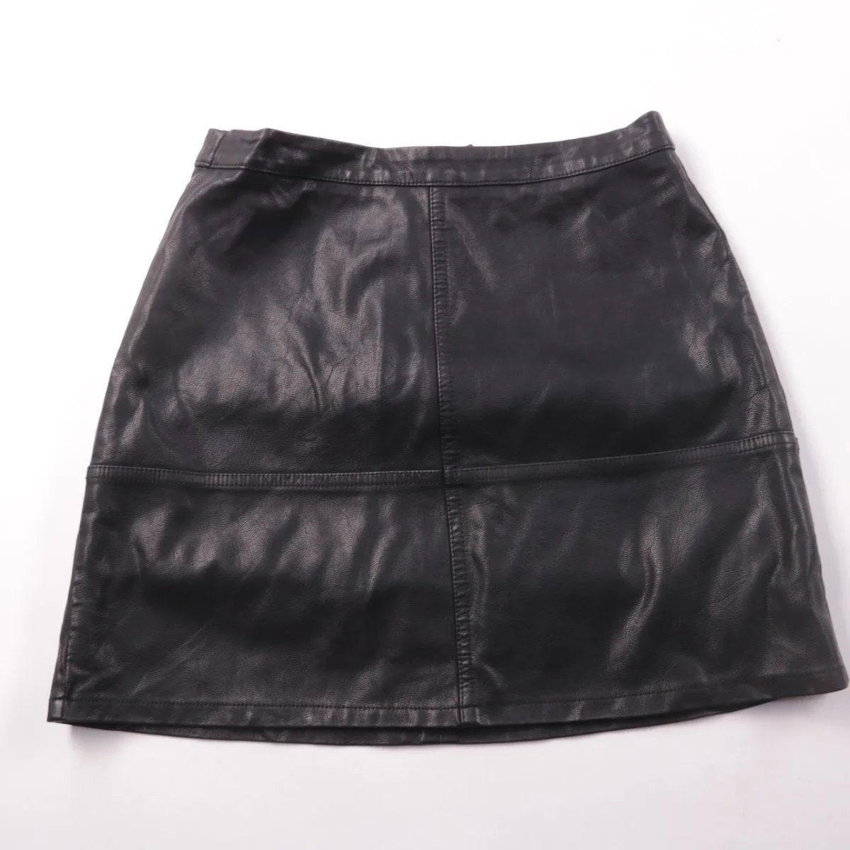 Юбка New Look из чёрной экокожи, короткая, с декоративными швами по полотну. Подойдёт для повседневных образов и вечера, хорошо сочетается с базовыми топами и жакетами. Материал легко протирать и он держит форму.